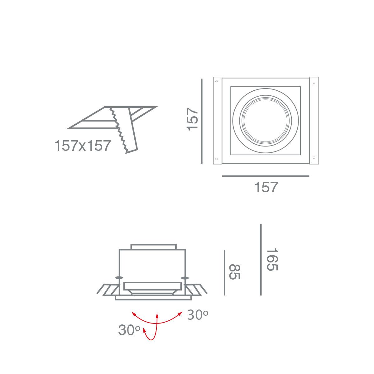 | Διαστάσεις | 157 x 157 mm H: 165 – 85 mm Κοπή οπής: 157 x 157 mm (Για τις ακριβείς διαστάσεις της κοπής των οπών, επιβάλλεται παραλαβή δείγματος από την εταιρία μας.) |